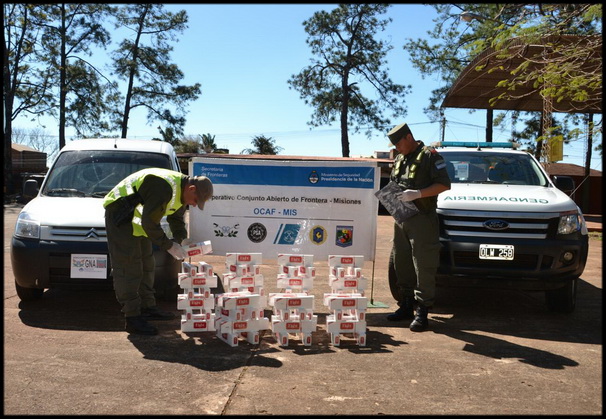 En otros procedimientos concretados por el personal de la Sección “NUCLEO” del Escuadrón y las Secciones “EL SOBERBIO y SAN VICENTE”, se secuestró una gran cantidad de cigarrillos extranjeros ingresados al país sin el aval aduanero. El primer procedimiento se llevó a cabo el día 18 de agosto en horas de la mañana y sobre la Ruta Provincial Nro 103, cuando se controló a un vehículo utilitario en el cual se transportaban 80 cartones de cigarrillos. Asimismo y en horas de la noche, personal de la Sección “El Soberbio” controlo un ómnibus de transporte de pasajeros que arribaba desde Posadas a esa localidad, en cuya bodega se hallaron dos bolsos con 75 cartones de cigarrillos; como así también el día 20 de agosto Personal de la Sección San Vicente procedió al secuestro de 1 Tractor marca VALMET, modelo 65 ID de origen brasileño, en un control en la Ruta Nacional 14 a la altura del kilómetro 981 de la Localidad de San Vicente, el mismo era transportado en un vehículo F4000, sin la documentación que avale su legal tenencia e ingreso al país.