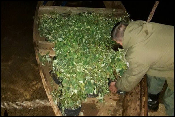 Asimismo el día 21 de agosto, Personal de la Sección “ALBA POSSE, que se encontraban realizando una Patrulla fluvial en costa Argentina del Rio Uruguay, al arribar al Puerto no habilitado “LA PLANCHADA”, localidad de Alba Posse, observan que arribaba al mencionado lugar, una persona en una canoa de madera a remo, proveniente del vecino País (Brasil), los Gendarmes proceden al control de la misma hallando en su interior 2.100 Plantines de “Eucaliptos”.