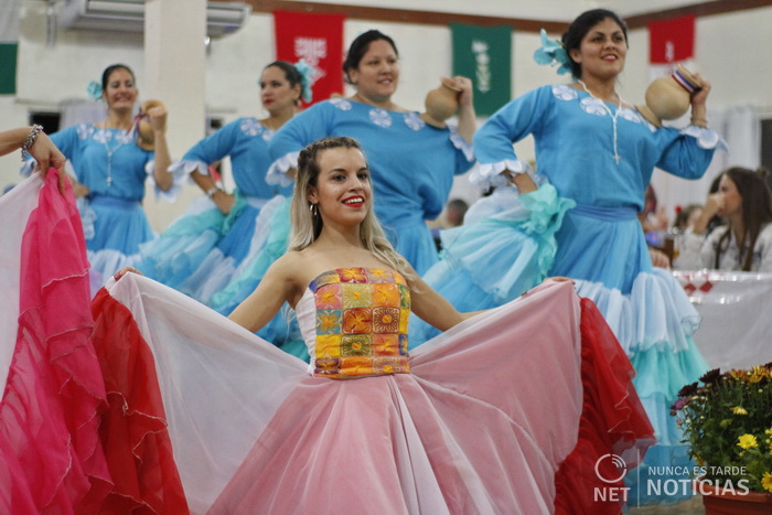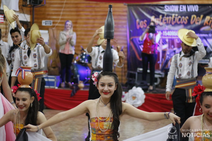 En el pabellón de espectáculos se lucieron los ballets de la colectividad Suiza, Nórdica, Checa y Alemana, mientras que Tiago Rossato desplego su talento músical, mientras que la Peña Chamigo saco sapucay a los espectadores.