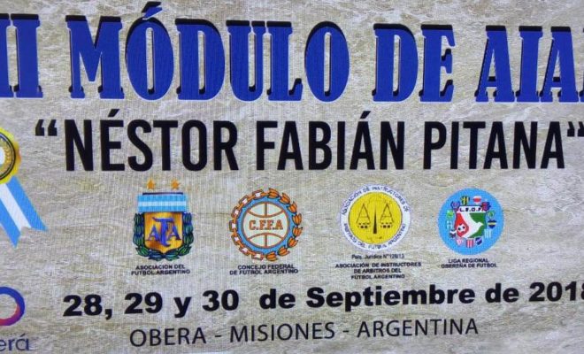 Desde este viernes 28 y hasta el domingo 30 de junio, se llevará el 3º Módulo de Capacitación, Actualización y Perfeccionamiento para instructores y árbitros de la región, con la presencia de la comisión directiva y cuerpo pedagógico de la Asociación de Instructores de Árbitros del Fútbol Argentino (AIAFA) encabezada por el ex árbitro internacional Carlos Alfonso Espósito. El evento tendrá el nombre de Néstor Fabián Pitana, por la trayectoria del misionero.