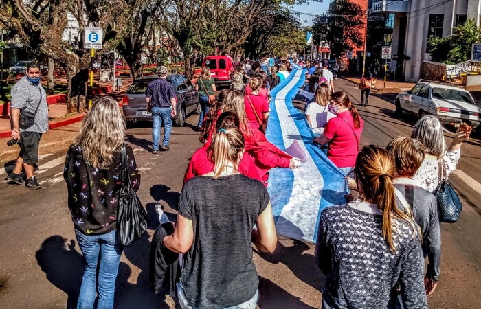 “La marcha en Oberá súpero los 250 docentes una suma interesante, teniendo en cuenta la situación de la pandemia, dónde el protocolo de bioseguridad se respeta y las carencias para que las personas salgan a manifestarse”, empezó explicando el docente Aníbal Ramírez a Netobera.