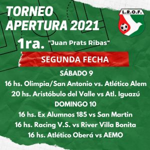 El torneo Apertura 2021 de la Liga Regional Obereña, en Primera y Cuarta División del masculino, arrancaría este fin de semana. En tanto el femenino disputará ya su segunda fecha.