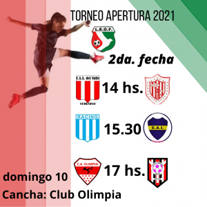 La primera División del Torneo Apertura 2021 de Fútbol Femenino va por la segunda fecha, que este próximo domingo 10 se jugará íntegramente en cancha del Club Atlético Olimpia.