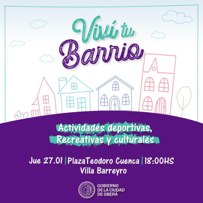 El próximo jueves 27 se pone en marcha el programa municipal ¡Viví Tu Barrio! Que tendrá como objetivo acercar a los diferentes barrios de Oberá diversas actividades culturales, deportivas y recreativas. La primera edición se realizará en la Plaza Teodoro Cuenca de Villa Barreyro desde las 18hs.