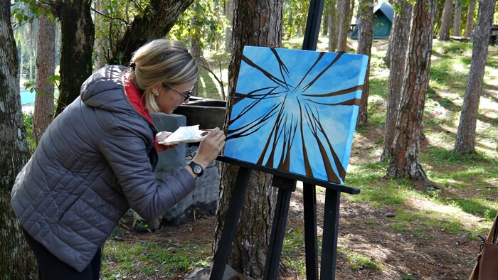 El lugar de encuentro y disfrute de la naturaleza fue en el complejo turístico Salto Berrondo de Oberá, rodeado de naturaleza, acompañado por el clima cálido del otoño, fue ideal para que los artistas desplieguen todas las técnicas en los bastidores, con temáticas libres.