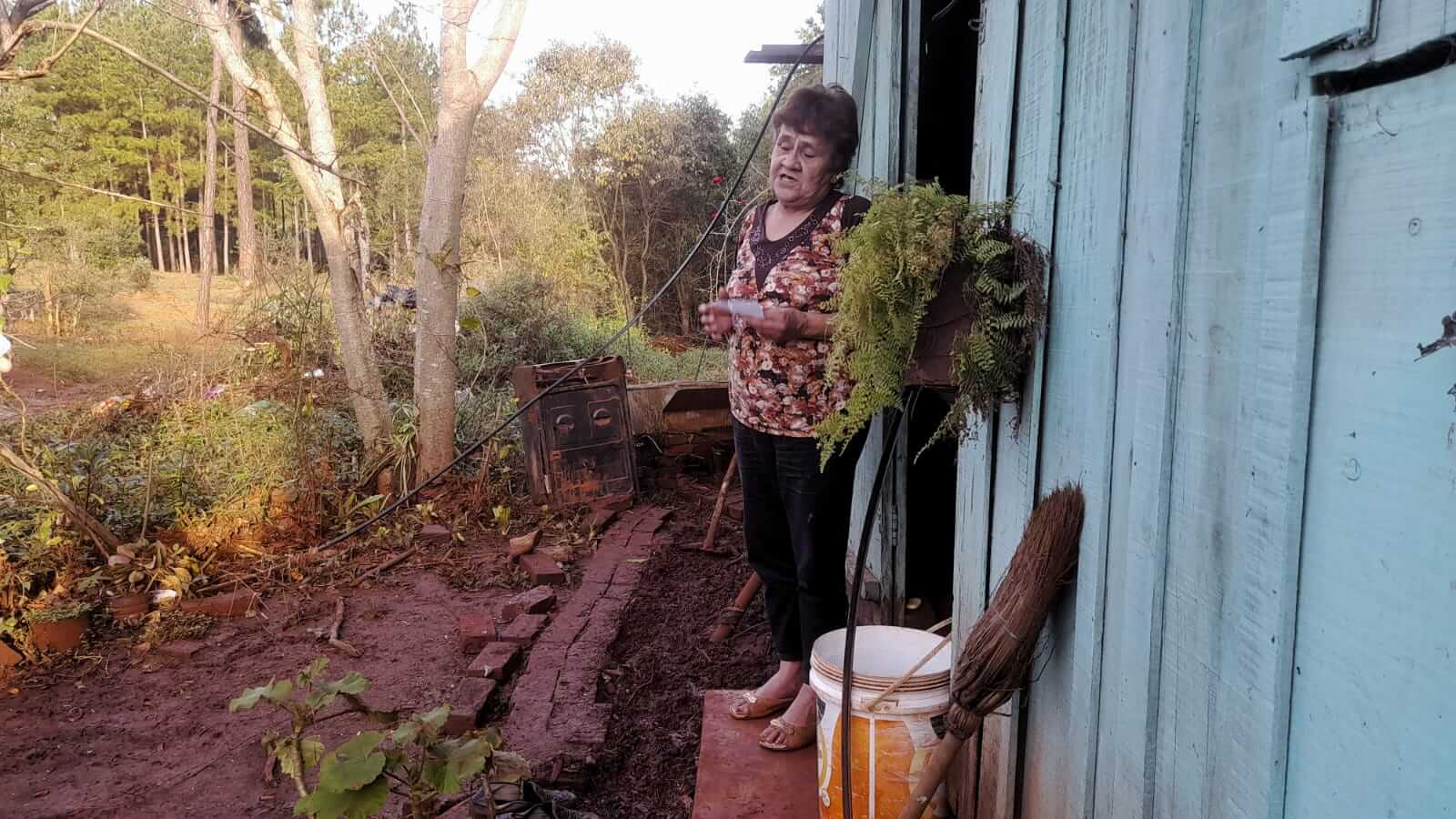 La abuela Ana Lorenza Vera Argüello (73) hace 5 años vive en el lugar y esta vez tuvo que sacar el barro de la casa con asada, «el barro se me vino encima arrastrando todo lo que había, ramas, basura, troncos y hasta una cocina vieja que no sé de dónde vino terminó en mi puerta. Se filtró por las paredes de madera», lamentó.