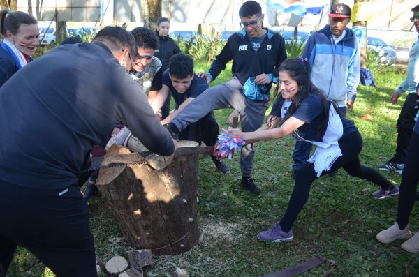 Luego de recorrer un circuito con juegos diversos, cortando troncos con trozadora, pelando mandioca, corriendo y saltando, sorteando diferentes postas, grandes y chicos disfrutaron de este grato momento, para luego reunirse y ser parte de la mejor imagen, donde todos los colores de todas las nacionalidades se mezclaban.