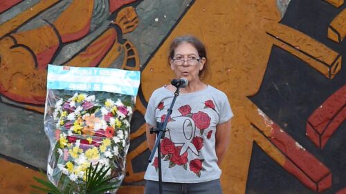 Además del acto y entrega de reconocimiento a las licenciadas obereñas, hubo intervención con el grupo de teatro comunitario, Murga del Monte, quienes hicieron una escena que representa lo que fue el reclamo y posterior masacre.
