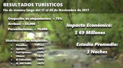 Oberá registró una ocupación en alojamiento del 62% a pesar de no contar con las Termas de la Selva, principal punto turístico. Según informaron fuentes oficiales, ...