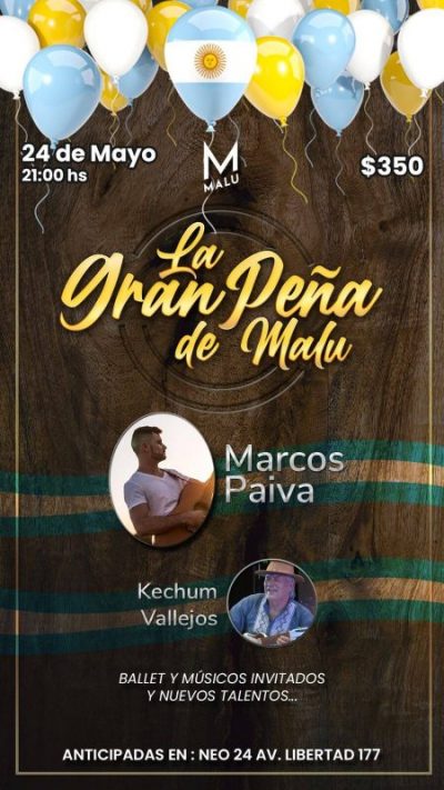 Se viene una doble jornada de Shows en Vivo, de primer nivel en Malu Multiespacio festejando primero el día de la patria como corresponde, ... -