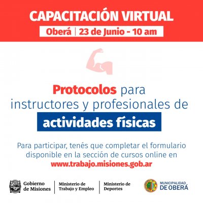 Este martes 23 de junio, los ministerios de Deportes y Trabajo, brindarán una capacitación virtual para instructores y profesionales de la actividad física a ... -