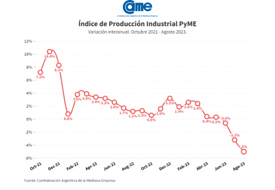 Durante agosto, la industria pyme mostró una caída del -5% anual