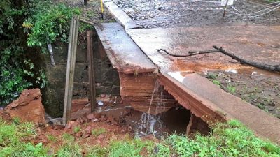 Ante las intensas lluvias colapsó la base de un puente en Oberá