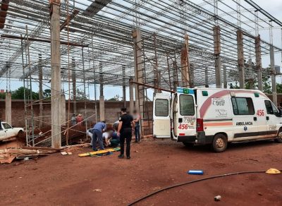 Joven obrero fue trasladado al Hospital, tras caer desde una obra en construcción