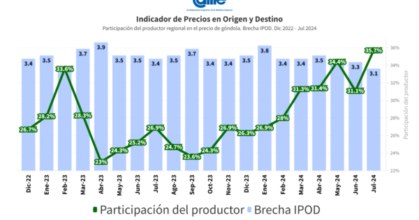 En promedio, la participación del productor alcanzó el valor más alto desde diciembre 2022 y explicó el 35,7% de los precios de venta final, un 14,8% más que en junio. La mayor participación la tuvieron los productores de brócoli (60,8%), mientras que la menor fue nuevamente para los de limón (7,1%). Durante el mes de ... -